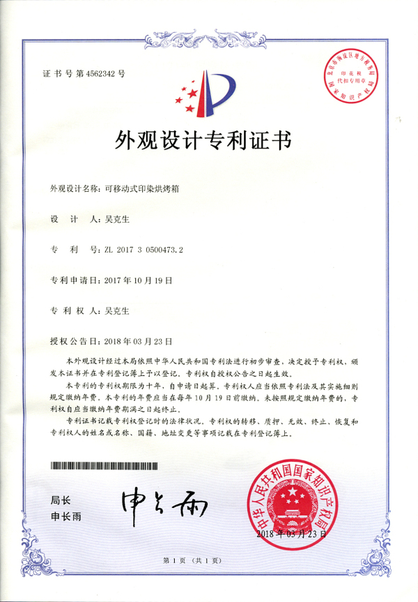 外觀設(shè)計(jì)專利證書